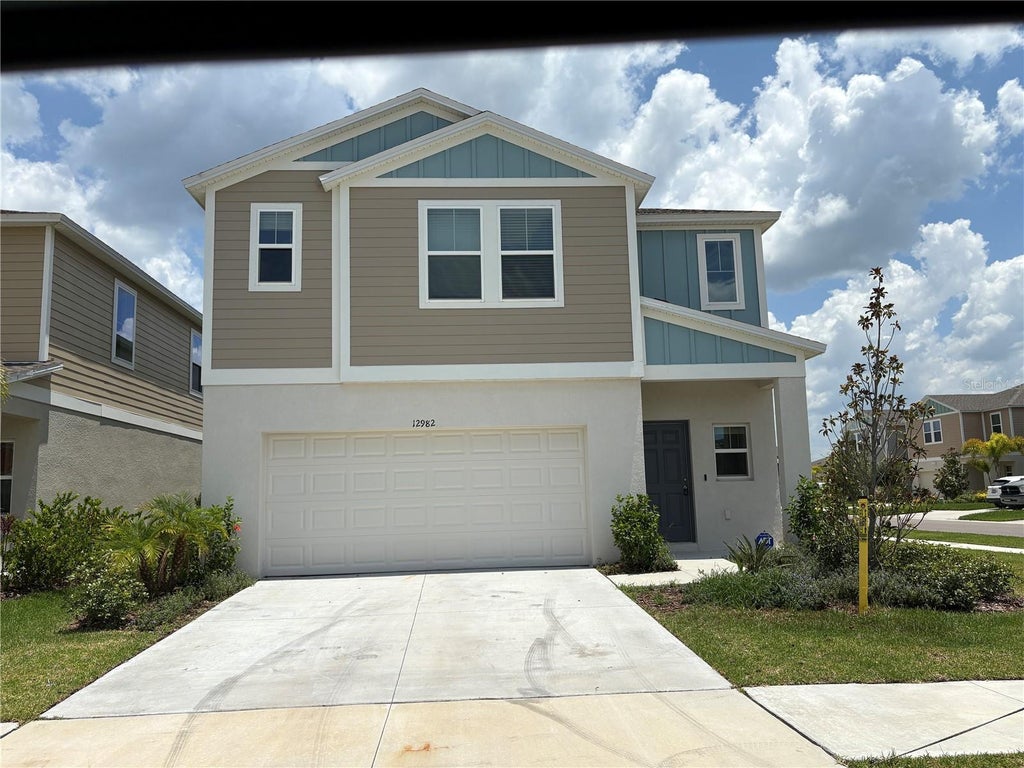 Step into this beautifully designed 5-bedroom, 3-bath two-story home featuring an open-concept layout ideal for both daily living and entertaining. The modern kitchen overlooks a spacious living and dining area, while a private guest suite is located on the main floor. Upstairs, you'll find the master suite, additional bedrooms, a versatile bonus room, and a convenient laundry area. Enjoy high-end finishes throughout, including quartz countertops, luxury vinyl plank flooring, white cabinetry, and stainless-steel GE appliances—all with a calming, coastal-inspired design. Located just south of FishHawk Blvd with easy access to US-301 and I-75, this home also offers access to community amenities such as a pool, dog park, playground, and more—plus top-rated schools nearby.